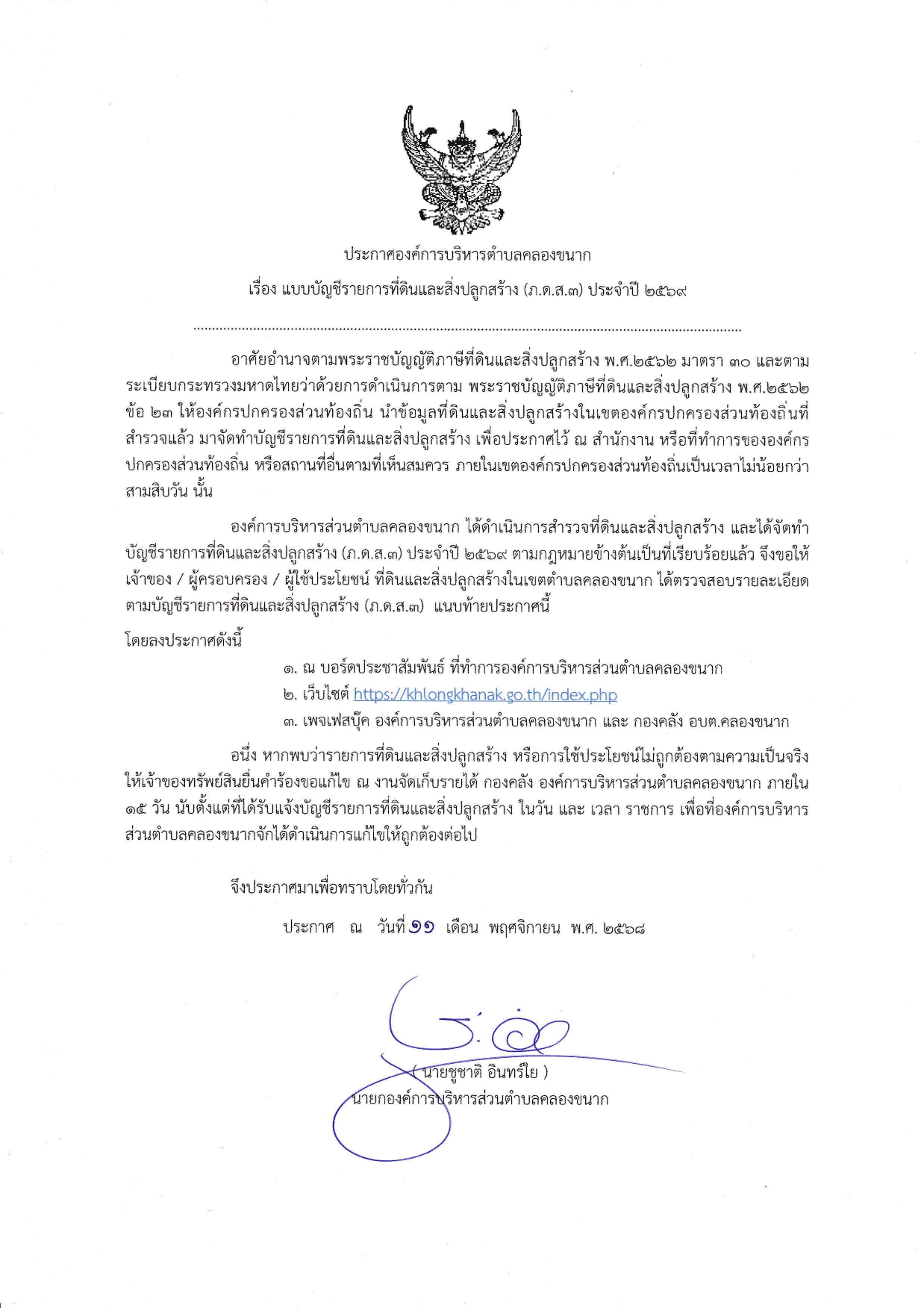 ประกาศแบบบัญชีรายการที่ดินและสิ่งปลูกสร้าง (ภ.ด.ส.3) ประจำปี 2569
