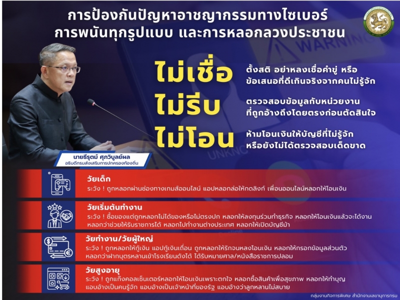 การป้องกันปัญหาอาชญากรรมทางไซเบอร์ การพนันทุกรูปแบบ และการหลอกลวงประชาชน