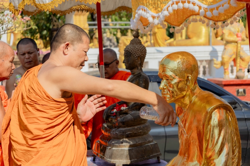 นำรถขบวนแห่สรงน้ำพระหลวงพ่อกร่ายวัดโพธิ์ศรี หลวงพ่อบุญมีวัดนางชำ