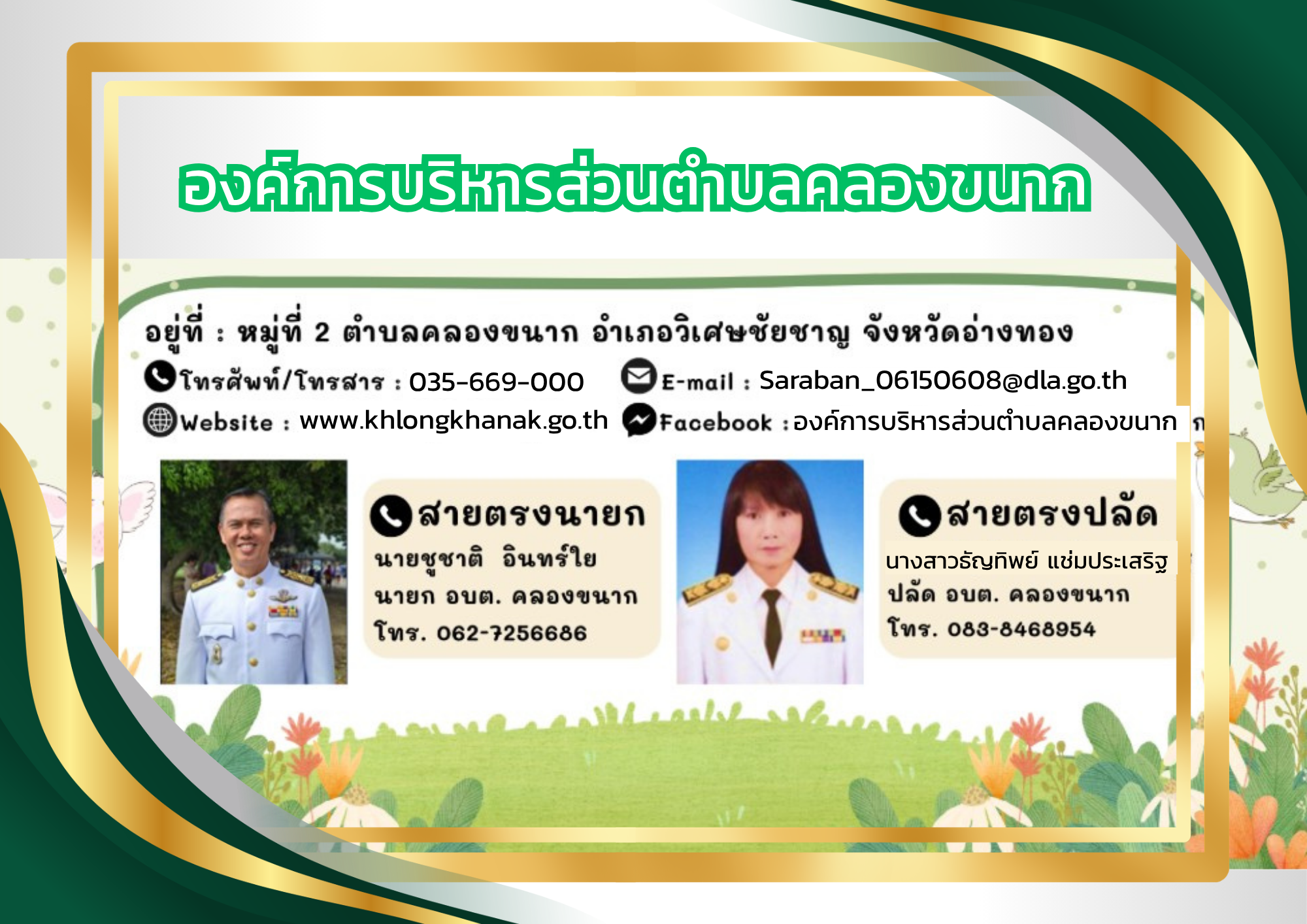 องค์การบริหารส่วนตำบลคลองขนาก อำเภอวิเศษชัยชาญ จังหวัดอ่างทอง : www.khlongkhanak.go.th