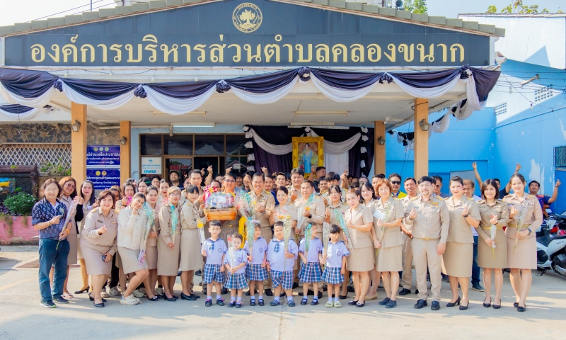 โดยมีหัวหน้าส่วนราชการ ข้าราชการ และพนักงาน องค์การบริหารส่วนตำบลคลองขนาก ร่วมให้การต้อนรับและแสดงความยินดี